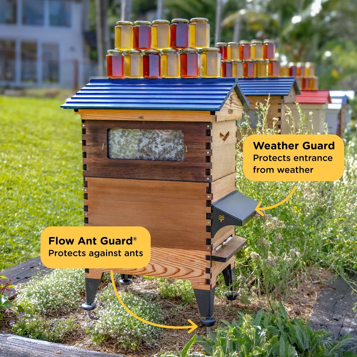 The Flow Weather Guard is a handy accessory designed to offer extra care for your bees. It protects the entrance of your hive from weather conditions including heat, rain and snow.