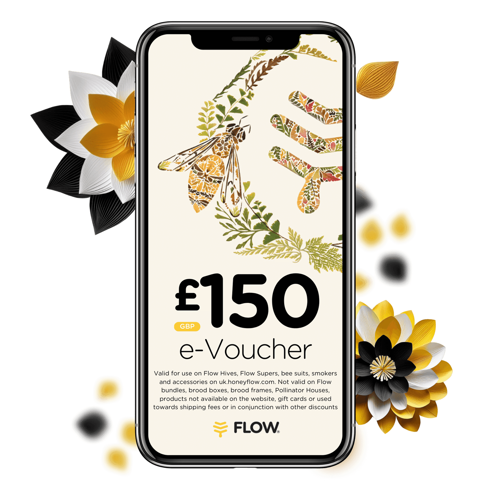 Valid for use on Flow Hives, Flow Supers, bee suits, smokers and accessories. Not valid on Flow Bundles, Brood Boxes, Brood Frames, Pollinator Houses, books, products not available on the website, gift cards or used towards shipping fees or in conjunction with other discounts (e.g. other coupon codes, sale items and bundles).