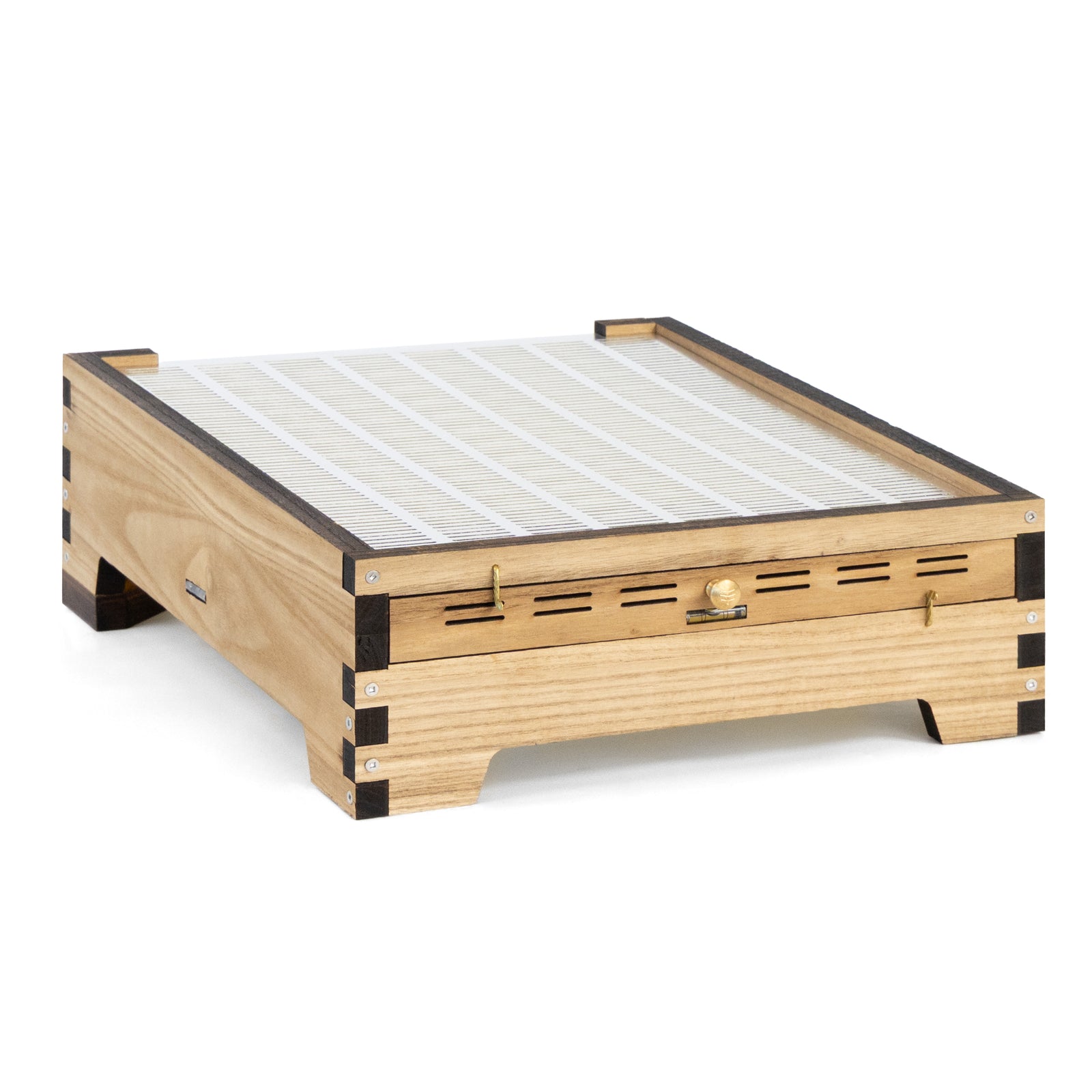 With must-have features, including a pest management system, optional hive stand, brass hardware, and a Flow harvesting shelf kit, this elegant beehive is perfect for beginners or experienced beekeepers
