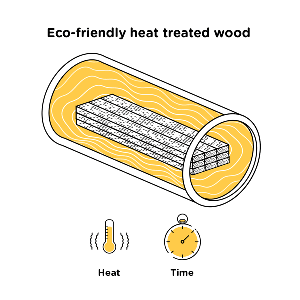 Using an innovative, chemical-free thermal treatment, we've created a timber that improves longevity by making it less susceptible to fungi and bacteria, warping, swelling, or shrinking.