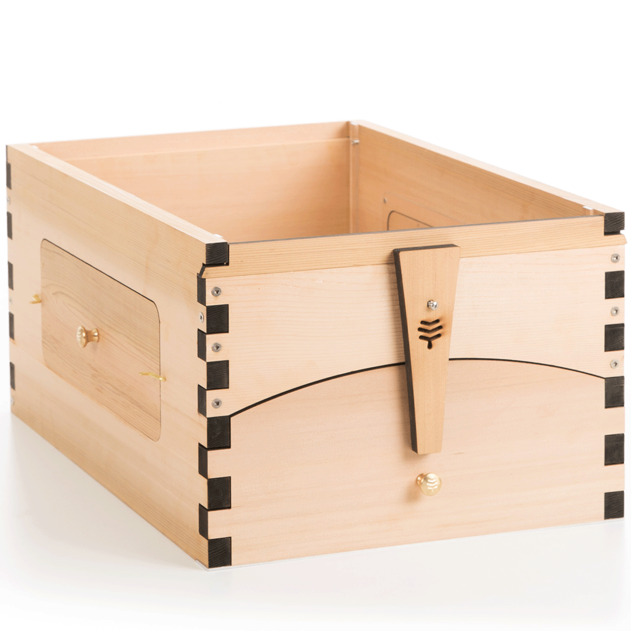 Manufactured from premium, sustainably sourced, western red cedar, the Flow Super – Flow Hive 2+ features 2 x observation windows, brass fixtures and is available with 6 or 7 Flow Frames.
